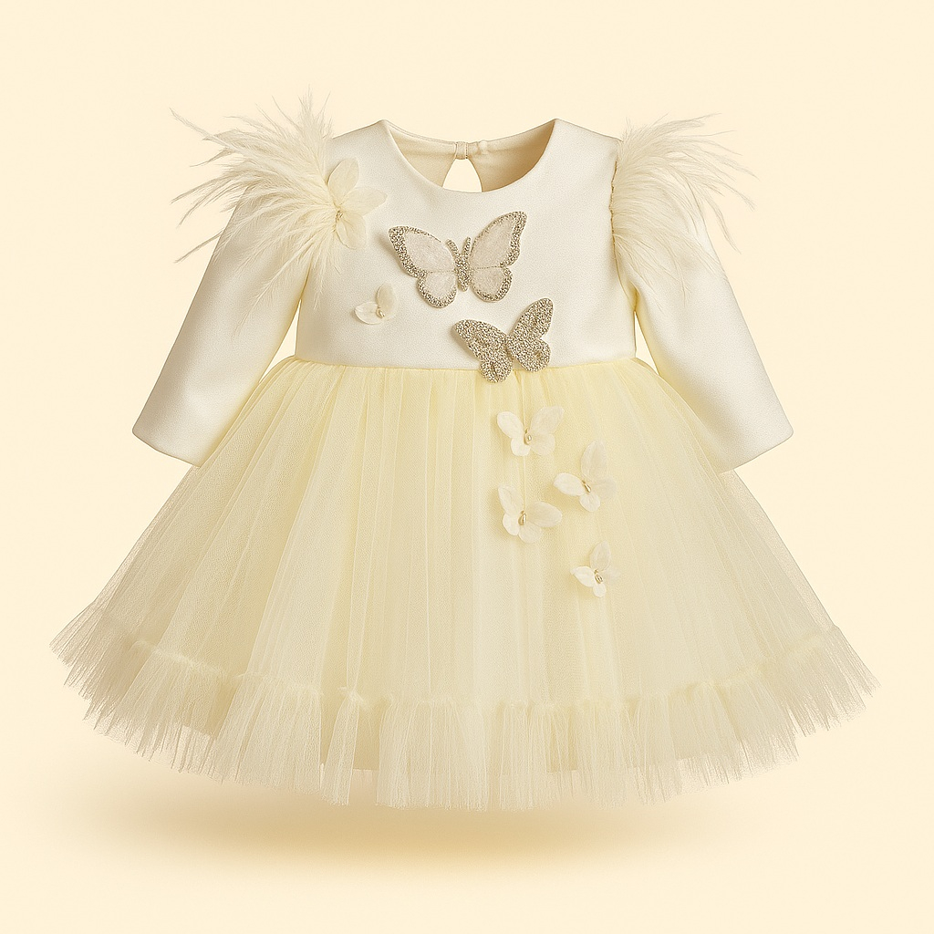 Rochita cu fluturasi, pietricele, pene si voal – Magia copilariei intr-o tinuta de poveste