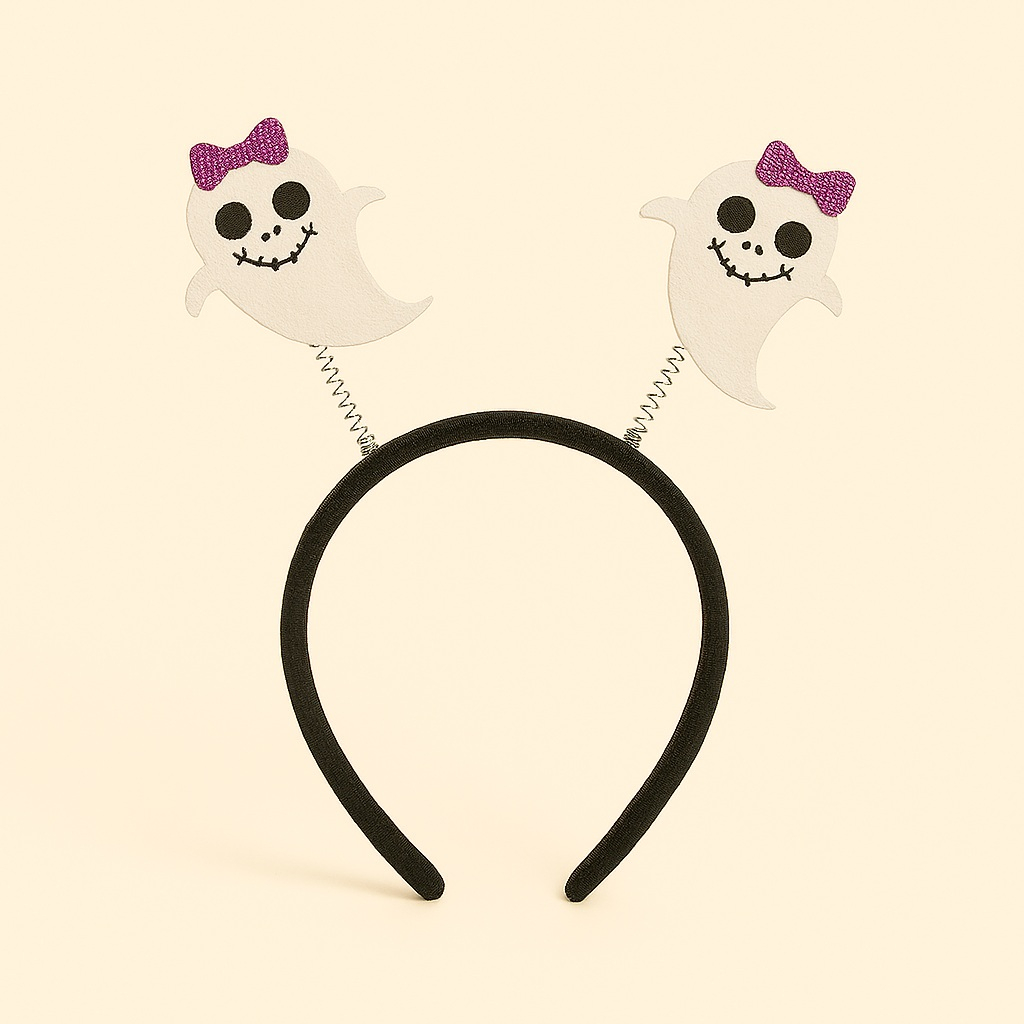 Cu elemente inspirate din simbolurile clasice ale sarbatorii – fantomitze – coronita creeaza instant atmosfera potrivita pentru petreceri sau seri cozy in familie.